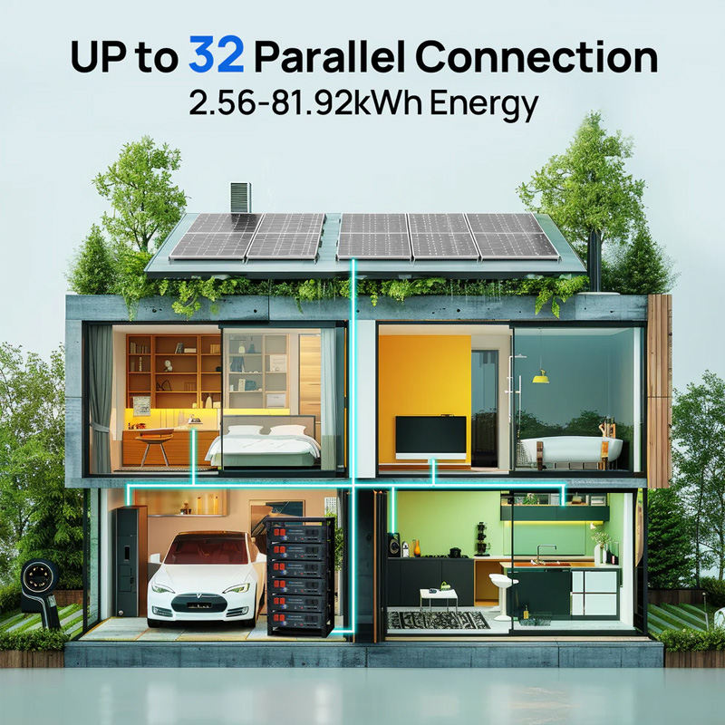 Quality Assurance:‌Powered by premium A-grade cells with extended lifespan. Enjoy 5-year after-sales support from a top DIY brand.Smart Monitoring: Supports CAN/RS485/RS232 communications. Pre-loaded with multi-brand inverter protocols for grid/backup/off-grid modes. Real-time monitoring via Bluetooth & WiFi connections. Access battery status through mobile apps or PC software.DIY Customizable Assembly: 3U rack-optimized design (61.9lbs) for single-person setup. Scalable to 32 parallel units with space-efficient stacking.High safety‌:Full-metal enclosure + 100A BMS (OC/OD/OC/SC/OTP safeguards) + 63A circuit breaker & master switch.Versatile & Powerful: Perfect for Home Energy Storage & UPS Backup Power. Includes all necessary cables for plug-and-play setup. Powers your shed, cabin, and enables off-grid living—say goodbye to electricity worries.