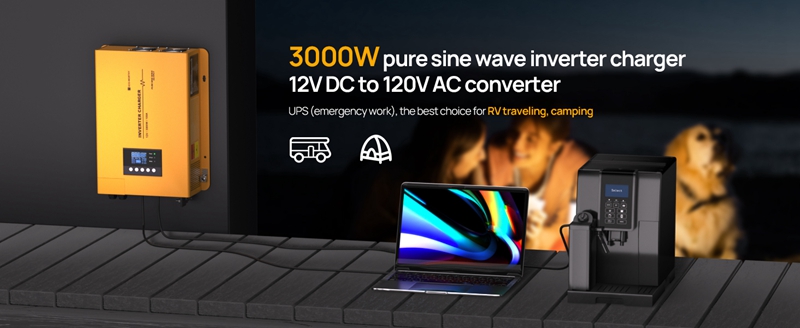 ECO-WORTHY Inverter Charger 3000W Pure Sine Wave Inverter,12V DC to 120V AC Converter Surge 6000W,25A~100A