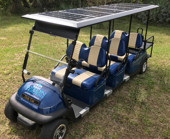 Actually, compared to the total weight of a golf cart (approximately 1100 pounds), the weight of the solar panels (less than 50 pounds) isn’t enough to affect operation.