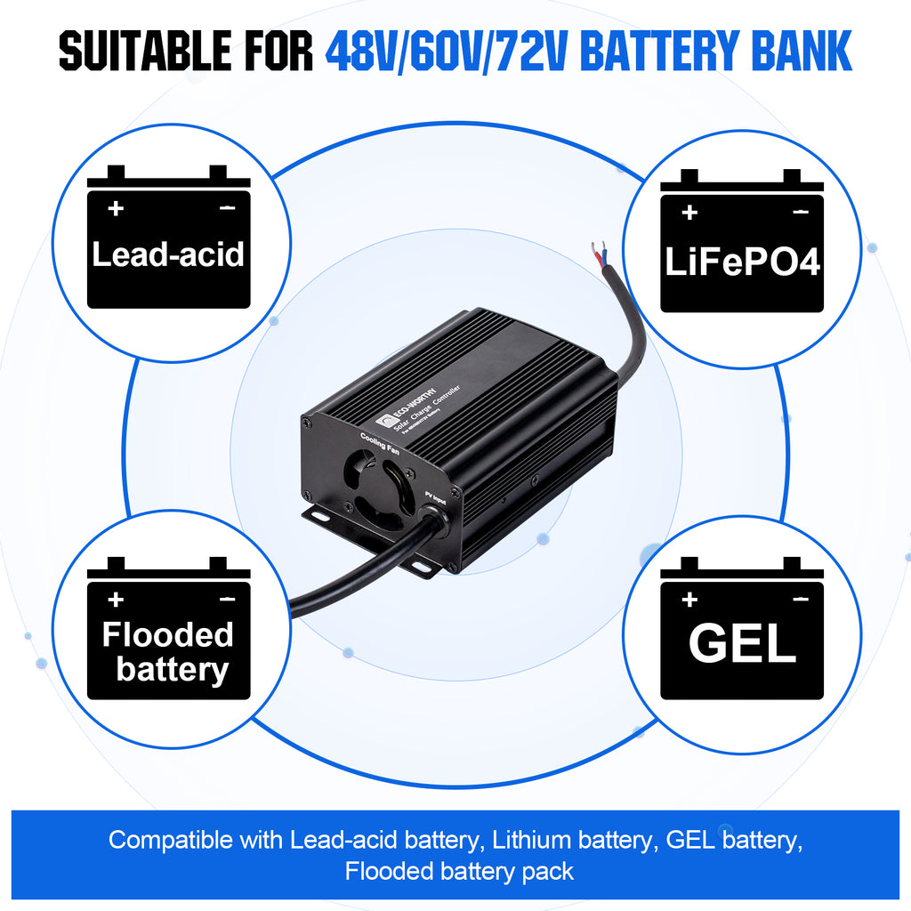 In addition, we've designed an MPPT step-up boost charge controller for the golf cart solar system, which can convert the 12V current from the solar panel to 48V/60V electricity to charge the 48V/60V golf cart battery bank. Reduce the panel's need and make the connection easier