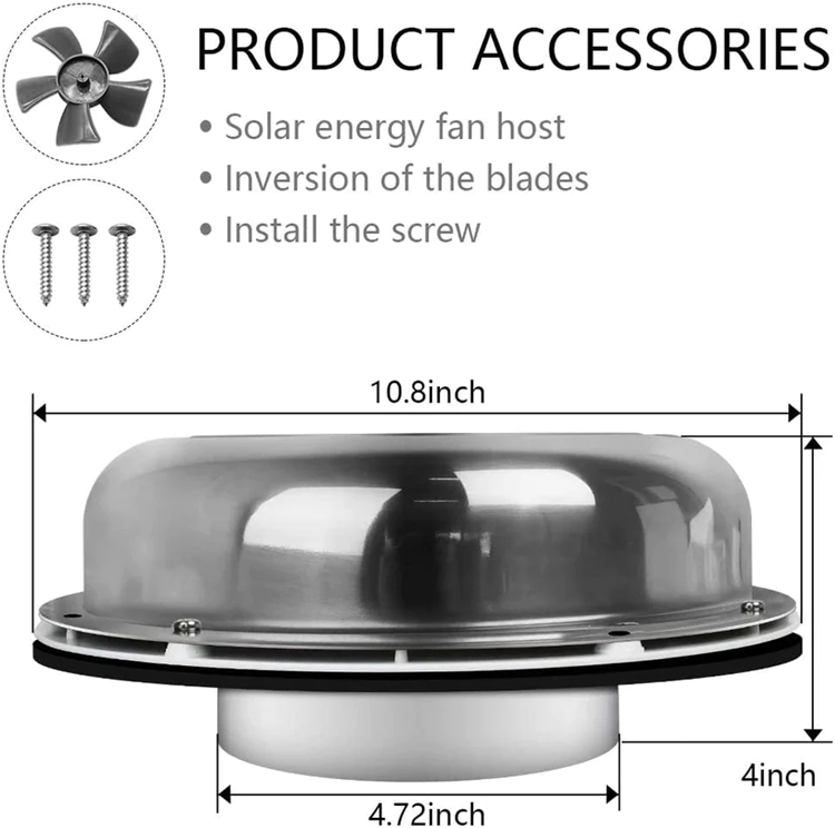 • 【 Well-Made Material 】- The material of this solar attic ventilator is stainless steel which provides longevity to the fan and prevents any rust from forming.